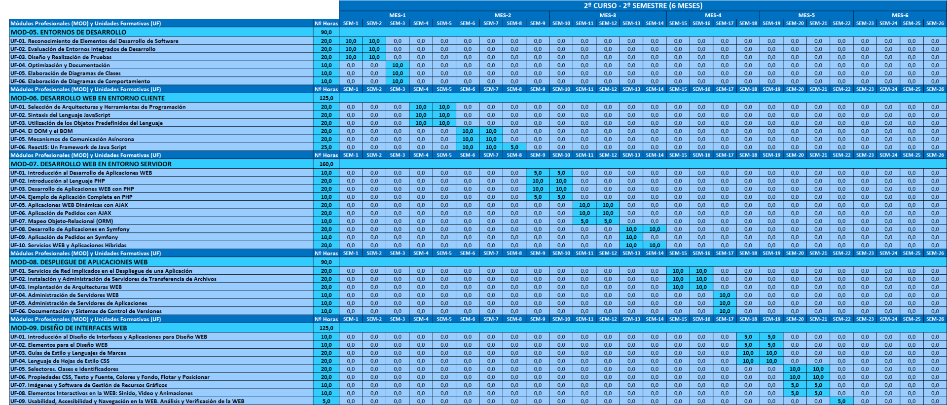 - 2ª Año del Ciclo Formativo (1º Semestre = 26 semanas):